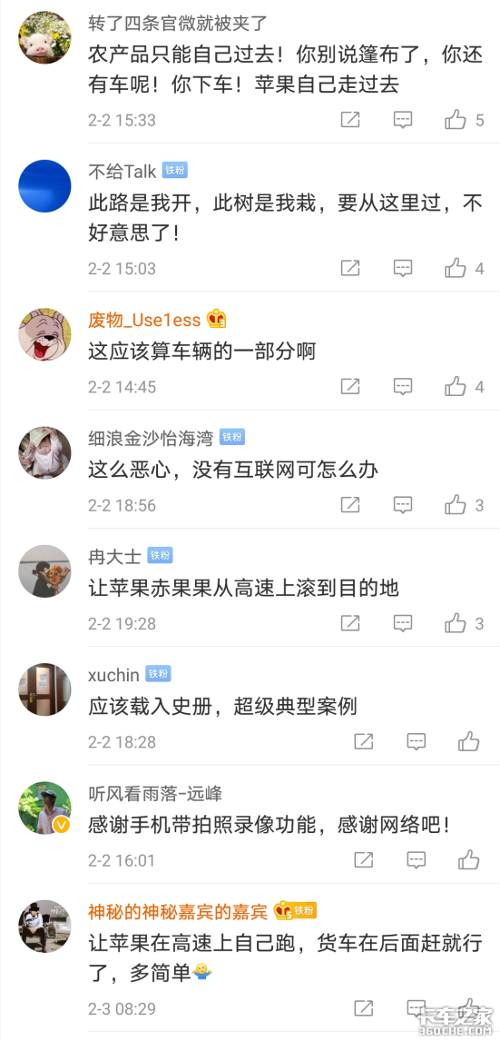 不过在截止本文发稿时,高速公路的管理方已经联系上运输苹果的卡友,向他退回了收取的过路费,事情也算暂时告一段落。