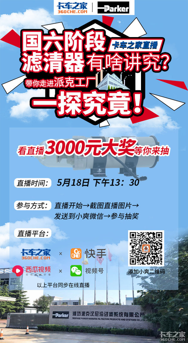 直播期间,通过【卡车之家快手号】、【卡车之家微信视频号】、【卡车之家APP】、【卡车之家西瓜视频号】四大平台中的任一平台进入直播间观看直播,截图发送到卡车之家小爽微信(扫描上方二维码)即可参与抽奖;