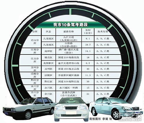 “我们重新确定了重庆市全市驾驶人考试路段10条和教练路段132条,其中包含32条考试备用路段(见表格)。”据市车管所介绍,新出炉的10条线路,涵盖9个区县,8个车管所。其中,主城区范围内的有5条路线,最长的是国道210线渝北段,达18公里,最短为九江大道一线,为6.1公里。据介绍,考试路段的交通标志标线正在进一步完善,4月初已陆续开始投入使用。