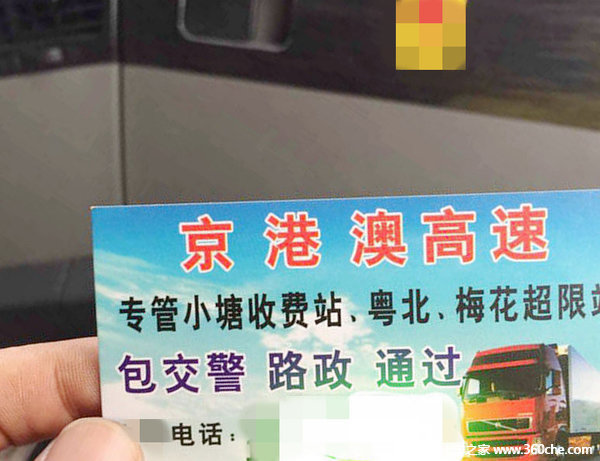 类似的现象还出现在京港澳高速湖南与广东的省界收费站,一个长期在这条线上跑车的卡友,在两省交界处服务区休息的时候收到了一张卡片,上面写着专管小塘、粤北和梅花超限站,路政、交警包过。据发卡片的黄牛介绍,提供信息咨询每次30元,如过带车包过收费站则需要100元。