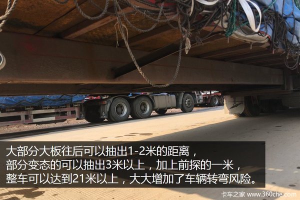 第三,安全问题,因为17.5米大板在运输过程中经常出现超宽超高的情况,从而影响了行车的视线,大板后方抽拉加长对于整车的转弯半径也有影响,影响了整个道路交通的安全和运输效率。