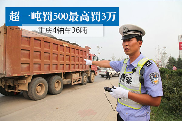 从卡友发来的资料中来看,重庆地区车货总质量凡是超过新国标1589中规定最大允许限值时(重庆按照4轴车36吨标准执行),1吨以内教育警告为主,每超一吨罚款500,罚款上限30000。