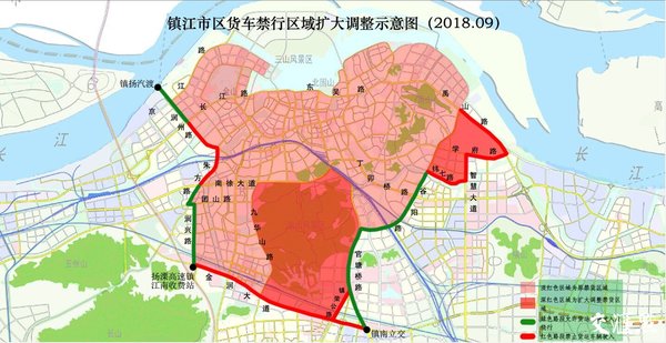 禁货区域详见《镇江市区货车禁行区域扩大调整示意图》图示。