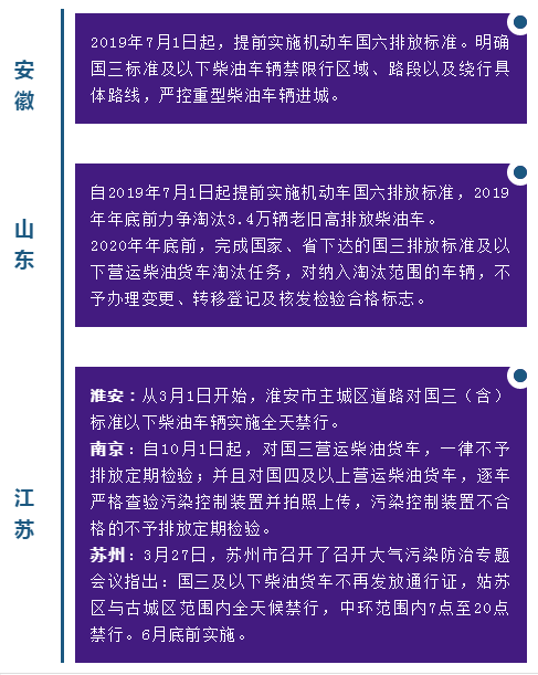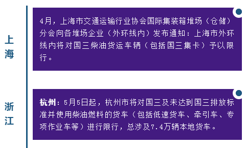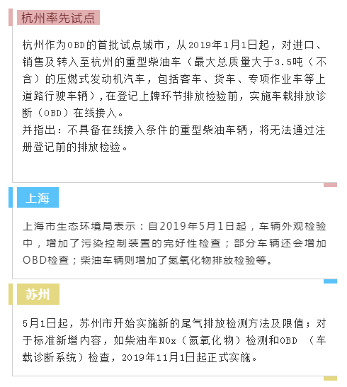 除了对国三柴油车给予限行外,浙江、上海等地区在验车上也进行加严,柴油车辆增加了氮氧化物排放检验等;部分车辆还会增加OBD检查。
