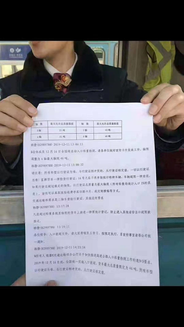 看到这个消息后,已经有卡友马上向无锡、常州的高速收费站工作人员取证,相关工作人员称确实有这么一回事,时间从2019年12月16日开始,但目前尚未贴出相关通知。