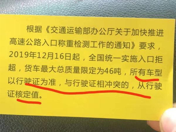 近日,有不少卡友爆料称:全国多地将于2019年12月16日起,全国统一实施入口拒超,货车最大总质量限定为46吨,所有车型以行驶证为准,与行驶证相冲突的,从行驶证核定值。