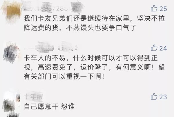 对于部分货主和货场降低运费的问题,希望能给卡车司机一条活路,我们卡车司机也是人,我们也有家。