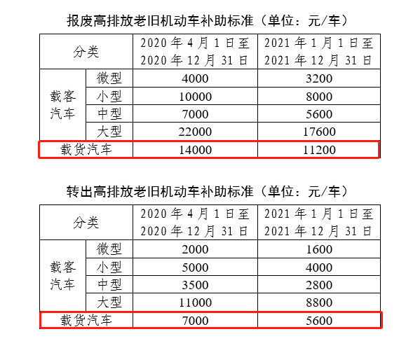 在2020年底前,国三汽油车报废最高补贴14000元、转出最高补贴7000元。