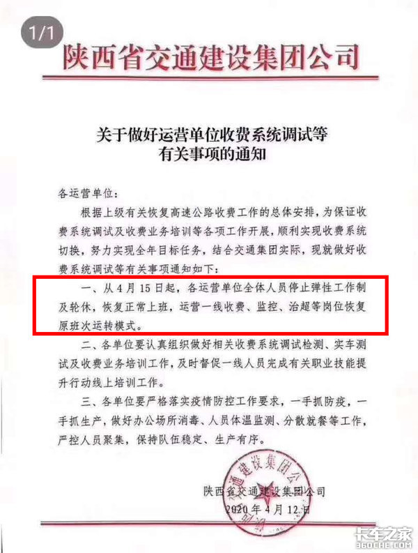来卡车之家App【卡车之家 原创】最近,有卡友在卡友圈发布了一张陕西省公交建设集团公司下发的《关于做好运营单位收费系统调试等有关事项的通知》文件截图。