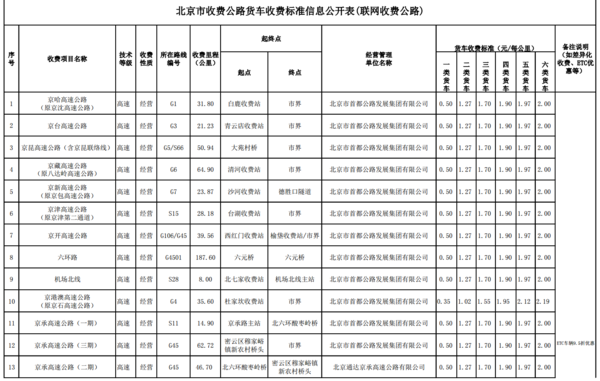 北京市货车收费标准公示表2: