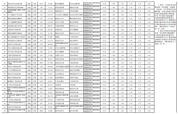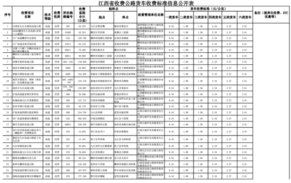 近日,江西省公布了最新的高速公路收费标准,具体如下。