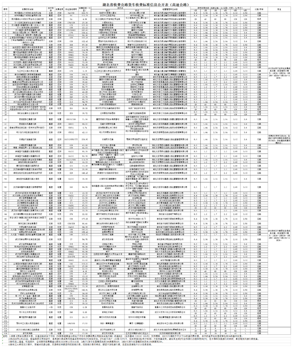 近日,湖北省发布了最新的高速收费标准,具体如下。