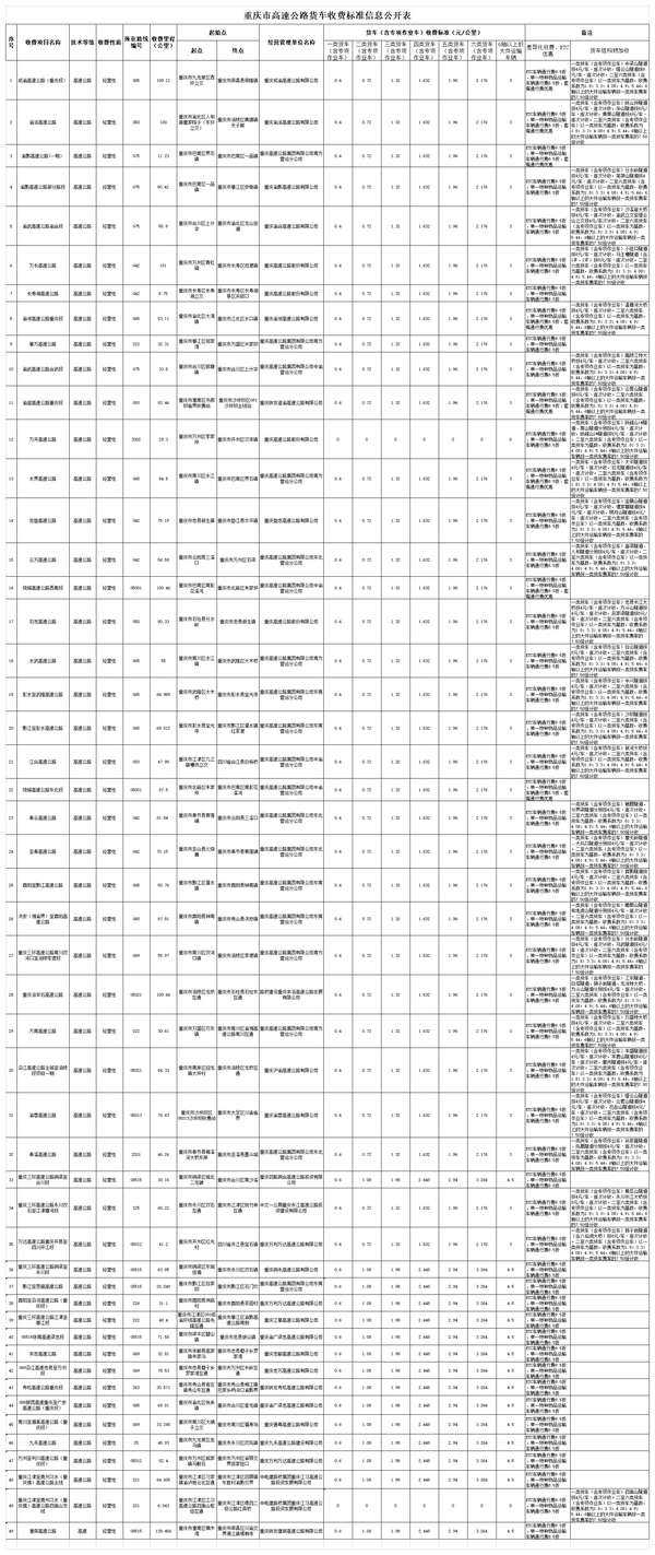 近日,重庆市人民政府发布了最新的高速收费标准,具体如下。