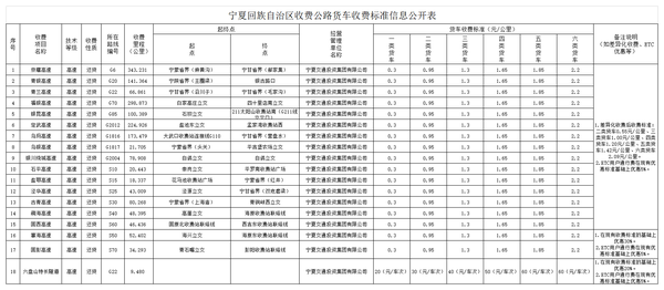 近日,宁夏回族自治区交通运输厅发布了最新的高速收费标准,具体如下。