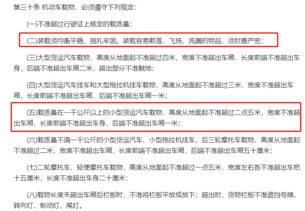 通过以上的实车举例相信大家也能够更直观的了解到皮卡装货的规定,只要你的装载货物高度不超过2.5米,宽度不超过货厢宽度,长度不超过货厢长度都是符合国家法规规定的尺寸,上路就不怕交警找麻烦。