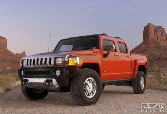 悍马H3T是在悍马H3的基础上改装而成,外观整体上沿袭悍马家族彪悍风格,车身长度较H3有所增加,视觉上更加强劲有力,后尾部改造成装载区并加装了硬顶车盖,与其它皮卡车型相比私密性更加突出。后尾灯处也做了相应的变动,加装了“Predator”标识,怒吼的蓄势待发状猛兽造型,给这部车注入了势不可挡的力量感。