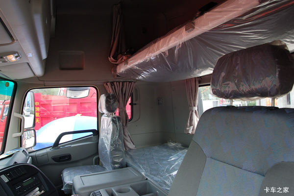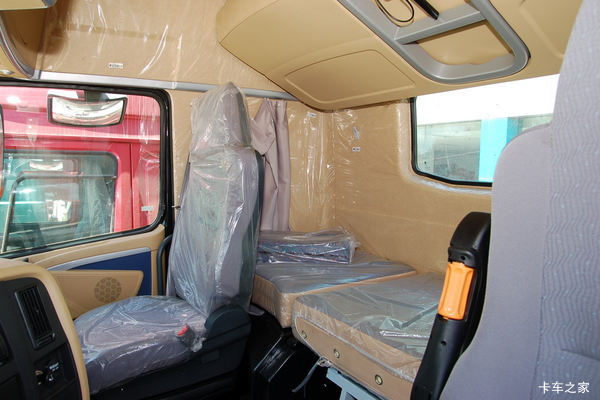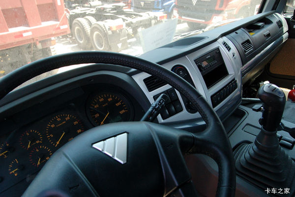 欧曼的驾驶室设计很不错,如四点全浮悬置、气囊减震的座椅,整体式侧裙板、后轮罩的设置等,提高了整车的舒适性,而浅色柔和的内饰色调更让人觉得温馨,使用的材料也比较隔热和环保,加大设计的储物箱和特别增加的外置内开式工具箱等,这些都很人性化。在安全性方面,该车的驾驶室符合欧洲EEC法规标准的碰撞测试。