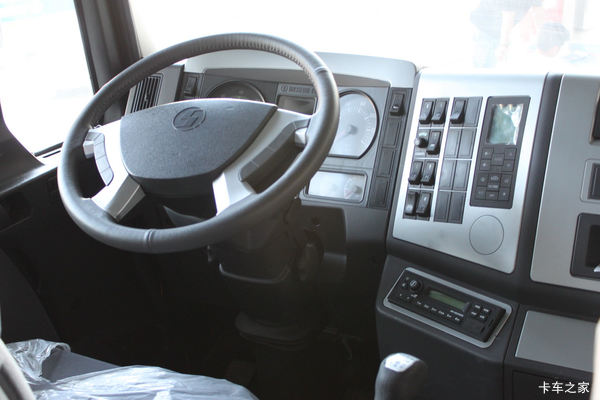 HOWO A7最大的亮点就是其豪华的配置,驾驶室内人性化的设置。整体米黄色内饰使驾驶室内部环境更加温馨舒适。整体环绕式仪表台,所有操纵键合理布局,触手可及。仪表板可将车辆工况信息通过LED显示,电子控制系统让驾驶员更加方便查看整车的运行状况,不过还是有用户反映在电子控制方面的表现还是不够稳定,经常有报警的情况出现。