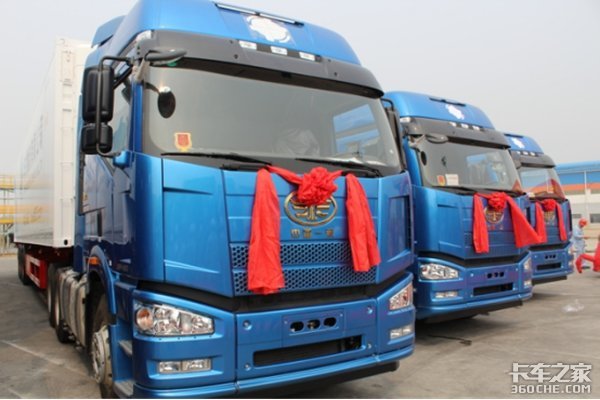 本次一次性采购近百台解放冷藏车,是采用国际水准的一汽解放J6P460马力领航北方版牵引车,该车型采用一汽解放新款浅钛蓝四点悬浮驾驶室,配备锡柴发动机,具有动力强,油耗低、更可靠的特点,配合国际水准的中集半挂车冷箱。