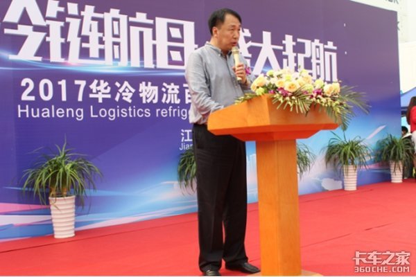 一汽解放汽车销售有限公司营销总监白锋先生,太仓中集冷藏物流装备有限公司总经理黄国浩先生向华冷物流集团副总经理刘恩泽先生移交车钥匙,象征此次活动的车型顺利交付。