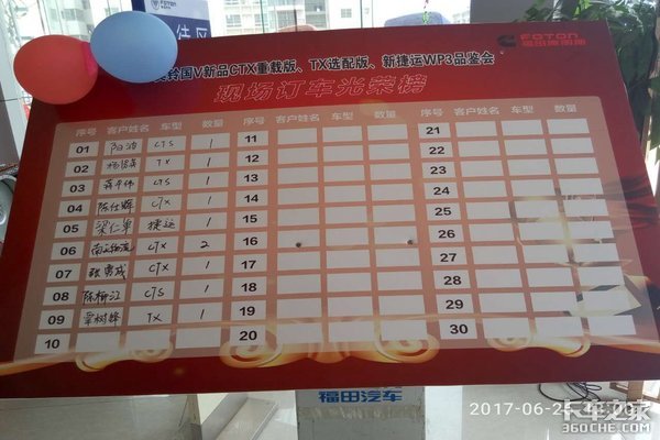订车光荣榜