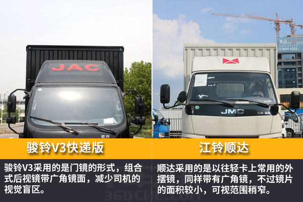 来卡车之家App【卡车之家 原创】货运行业细分化,不同的领域使用不同的车型已经是现在货运行业的趋势,特别是目前快递行业的发展飞快,不少厂家都在推出针对快递运输的车型,像江淮骏铃近期推出的V3快递版,就是专门针对快递运输的车型,而它最主要的竞争对手则是江铃顺达窄体轻卡。那么两车之间有啥区别?