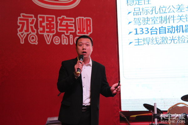 陈总致辞说到,“首先十分荣幸感谢大家在百忙之中抽空前来参加本次卡车侠新年团购活动。东莞市永强汽车销售服务有限公司成立于1997年,是解放汽车在东莞地区的授权总经销商。短短十几年时间,企业业务已涉及到商用车销售、汽车维修及保养、汽车配件销售、石油配件销售、汽车保险、金融服务等各个领域,感谢各位在过去的时间里对东莞永强车邺的信赖和支持!相信此次由我司承办的一汽解放青岛卡车侠新年团购会,从车型、价格等各方面,都会为各位购车者提供更大的选择空间。也希望各位能一直关注解放品牌,支持东莞永强,我们会做得更好!”