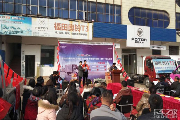 现场活动:本次活动推广的车型有奥铃T3单排平板,奥铃T3双排平板,单排汽油厢车,单排翼开启厢式车。