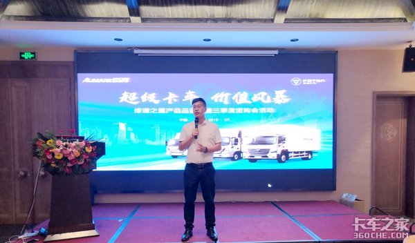 来卡车之家App【卡车之家 原创】2018年7月21日,杭州星原汽车有限公司携手福田欧马可在杭州瑞莱克斯大酒店举行“欧马可全系超级卡车”推介会。