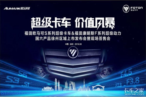 来卡车之家App【卡车之家 原创】2019年8月18日,徐州佳业汽车销售有限公司在银地农机大市场徐州佳业欧马可4S店举办了主题为“超级卡车 价值风暴”的福田欧马可S系列超级卡车暨福田康明斯F系列超级动力上市发布会,上市会现场共斩获订单11台,打响国六市场第一枪。