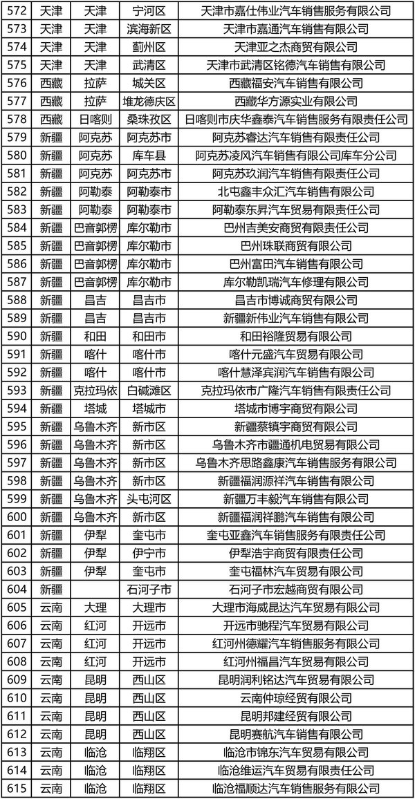 时代汽车一级经销商名单