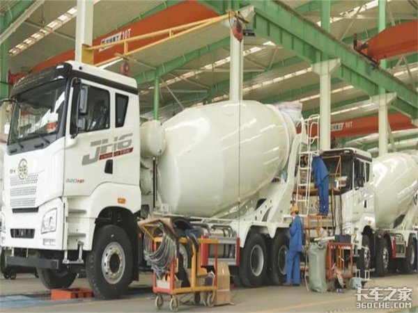 一汽解放JH6搅拌车在亚特重工工厂组装线