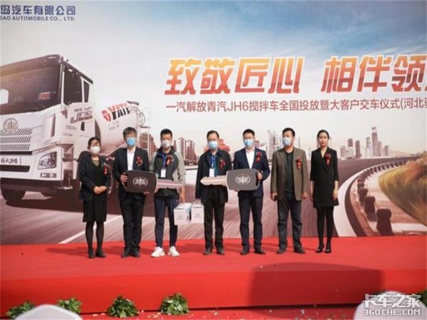来卡车之家App【卡车之家 原创】2020年5月25日,“致敬匠心 相伴领航” —一汽解放青汽JH6搅拌车全国投放暨大客户交车仪式活动隆重举行,活动通过在线直播发布及河北石家庄现场交车仪式混合模式举行,开创商用车在疫情复工之后网络直播与现场活动的双互动、双发布的成功模式。来自一汽解放青岛汽车有限公司、唐山亚特专用汽车有限公司、河北正洋集团的各位领导和嘉宾,以及一汽解放青汽的新老客户们齐聚一堂,共同见证了一汽解放青汽JH6搅拌车正式投放全国。