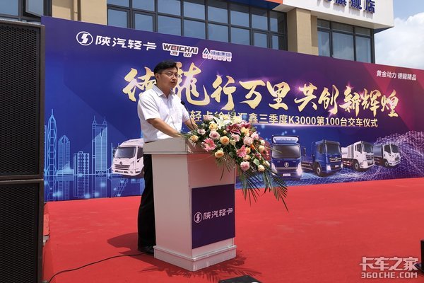 今天见证了这一激动人心的时刻,第100台的交付,又一次预示着徐州地区卡友对陕汽轻卡信赖!同时也祝愿在座的各位,身体健康!万事如意!也祝愿陕汽轻卡大卖!