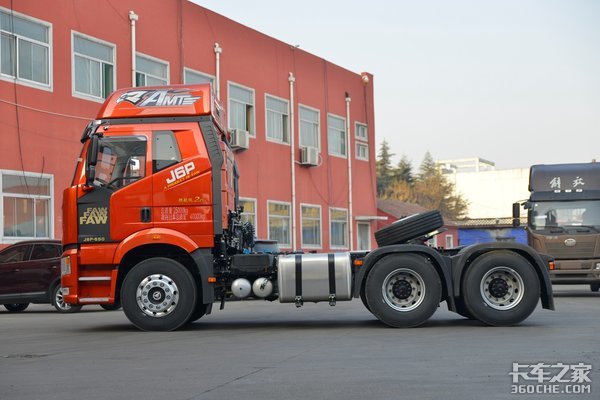 促销车型信息:一汽解放新J6P重卡领航版2.0 550马力 6×4 AMT自动挡牵引车;搭载解放动力CA6DM3-55E52发动机,12.52L排量,符合国五排放标准,最大输出功率407kW(550马力),扭矩2600N·m;匹配12挡一汽解放AMT手自一体变速箱,型号为CA12TAX230A1;底盘采用前2后3板簧形式;油箱采用铝合金材质,轮胎规格为12R22.5。