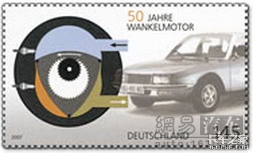 为纪念转子发动机发明50周年发行的邮票.这枚邮票面值为1.45欧元
