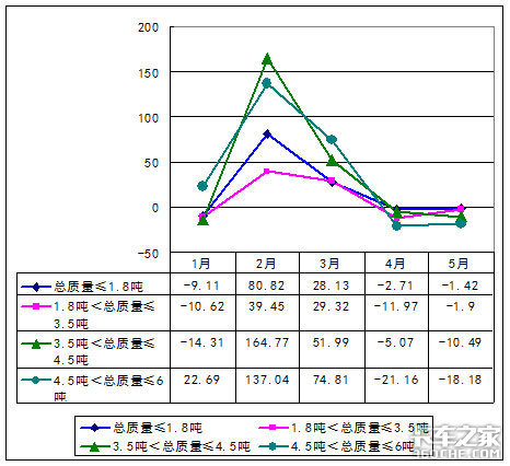 通过对1~5月份轻卡及轻型柴油机统计数据的分析,可以初步得出如下的结论: