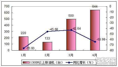 图表5 2009年1~4月份130KW以上柴油机出口趋势图