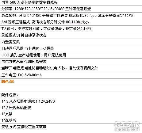 该款行车记录仪的参数