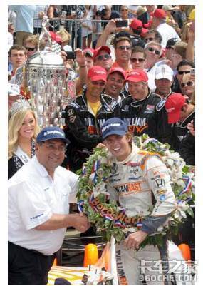 来卡车之家App 密歇根州奥本山,2011年5月31日在丹威尔顿获得了2011年印第安纳波利斯500大奖赛的胜利之后,博格华纳公司的董事长兼首席执行官孟天慕先生在颁奖台向他颁发了博格华纳杯。威尔顿在2005年和2011年获得这项赛事的胜利,他的纯银肖像将第二次被镌刻在这个历史悠久和著名的奖杯之上。这次胜利标志着这项“历史上最伟大的比赛”已经成功举办了一百周年。