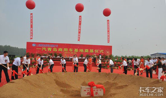 今天上午,一汽青岛商用车基地项目在即墨市青岛汽车及零部件工业功能区奠基。青岛市委常委胡绍军,一汽集团公司副总经理董春波,一汽集团公司总经理助理、一汽解放青岛汽车有限公司总经理徐衍男等领导出席仪式。