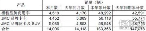 而今年我国轻卡销量不容乐观,江铃也受市场低迷影响。今年10月份,JMC品牌轻卡销量达4452辆,与去年同期相比下降12.5%。前10个月JMC品牌卡车累计销量达5.81万辆,同比增长4.2%。