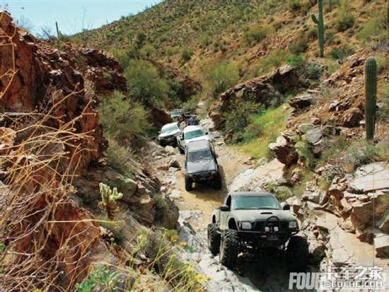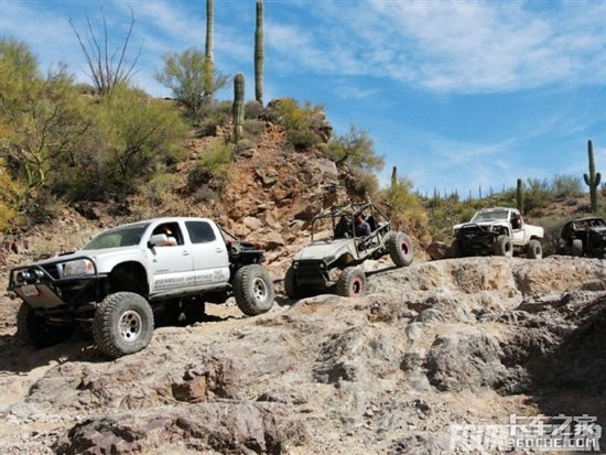 来自TTORA(Toyota Territory Off-Roaders Association),丰田越野爱好者组织)在近日举办的名为“AZ Rocks”的集会就会聚了这样一队丰田的改装皮卡。活动地点为一片废弃的矿山,地形非常崎岖且多为岩石路面,更有十分陡峭的坡,不论是对驾驶者还是车辆来说,都是一个严峻的考验。