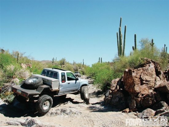 车队中的丰田可谓是千奇百怪,有多种年份的Tacoma、prerunner以及4Runner。其中一款两驱版本prerunner被改为四驱版,使用Dana 60系列车桥,减震行程升至17英寸,可以装备40寸的轮胎,轴距也达123英寸。
