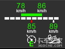 速度设定值能够缩小至可编程的“favourites”(偏好)窗口,左侧显示设定的巡航速度,下坡速度则位于右侧。中间是驾驶员为自适应巡航控制系统选择的时间间隔。在Active Prediction调节速度时,显示屏上都会出现绿色字母 E。