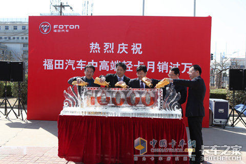 福田汽车领导(赵维纯、赵景光、宋术山、赵建民、康界炜)为中轻卡月销售过万揭幕