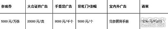 标准展位:3m×3m展位(三面围板、一块楣板、一桌两椅、两个射灯、220V电源插座)