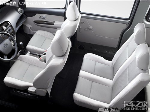 内饰:中控台完全摒弃了传统微客车型的设计,样式更趋向于轿车化,设计布局更加合理,并且在细节方面做得也比较到位。主副驾驶位之间采用无障碍设计,提高了空间利用率。在中控台及前门板上增加了多处储物盒,人性化设计和实用性都有所提升。
