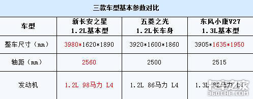 新长安之星的长宽高分别为3980/1620/1890mm,轴距为2560mm,与同级别的五菱之光和东风小康V27相比,在车长和轴距方面稍占优势。动力系统,搭载的是一台编号为E12的1.2升新发动机,最大功率可以达到98马力,峰值扭矩为119N·m,传统部分匹配5挡手动变速箱。