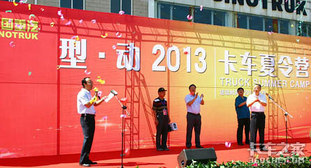 中国重汽集团公司副总经理、济南卡车股份有限公司董事长于有德出席开营仪式,并对参加本次夏令营活动的用户代表们表示热烈的欢迎和衷心的感谢。他说,HOWO-T7H是中国重汽历时三年多潜心研发,并全面引进、消化、吸收德国曼技术,精心打造的一款国内外同步上市的新一代高端重卡。上市之前就引起业内人士的高度关注,正式销售至今已接订单1200余台,市场反映良好,将为广大用户带来可观的收入和惊喜。